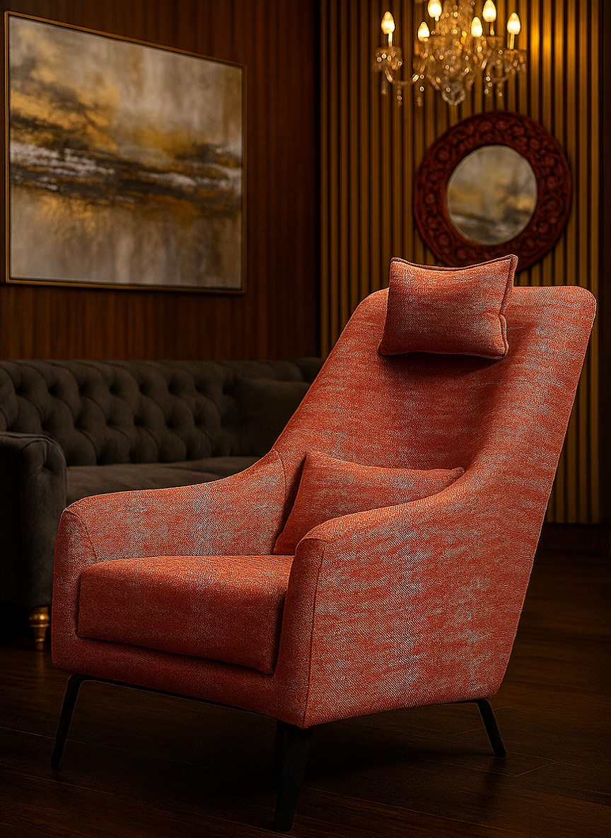 From a cozy corner to an elegant drawing room, the Living Room Chair Juno adapts effortlessly. Its bold presence and luxurious feel make it ideal for both homes and stylish lounges.