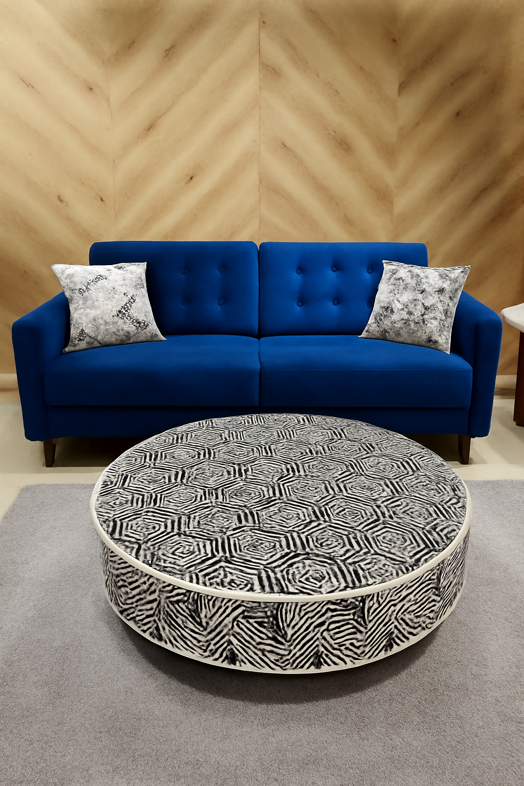 Luxurious Fabric: The dark blue color is often rendered in a sumptuous fabric that enhances its depth. A high-performance velvet would make the color rich and luminous, changing with the light. A durable tweed or chenille would offer texture and a more casual, inviting feel.